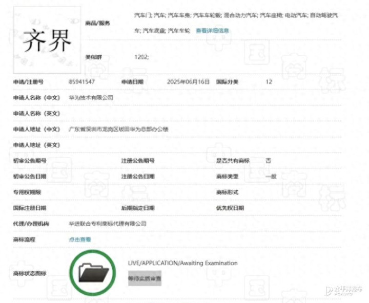 【太平洋汽车 行业频道】近日永隆配资,国家知识产权局商标局最新信息显示,华为技术有限公司近期申请注册了“齐界”商标,申请日期为今年 6 月 16 日,该商标目前处于等待实质审查阶段。