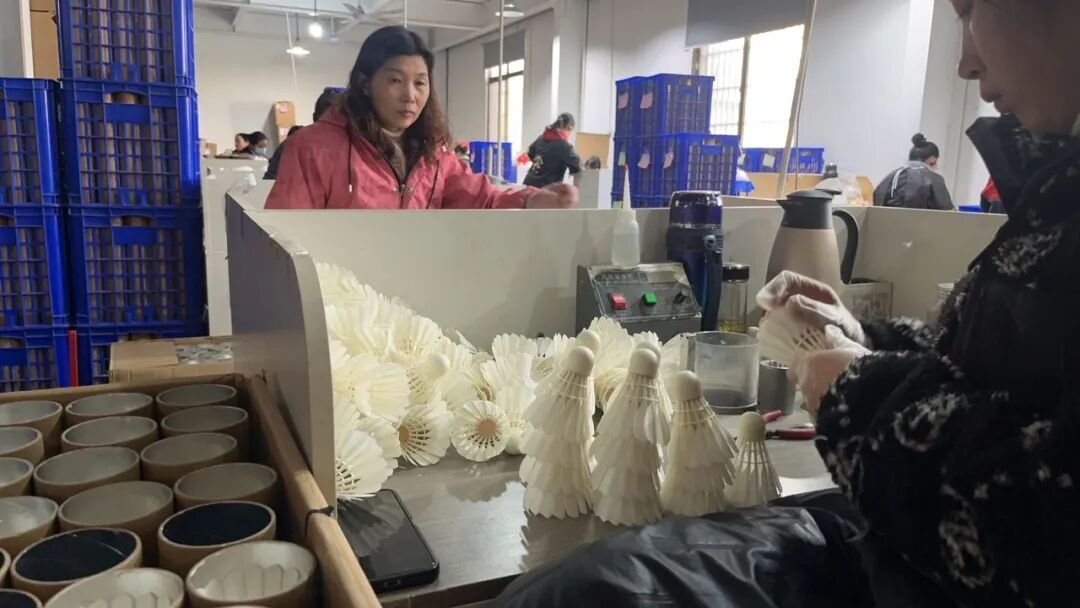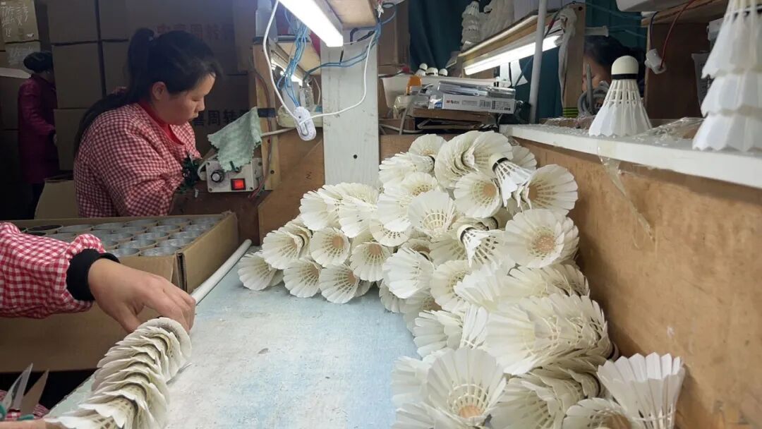 据金俊文观察,这几年羽毛球毛片的生产量“几乎翻了一倍”。安徽六安一家毛片自动化加工设备制造厂的技术人员也提到,他负责的机器主要销往无为,2023年和2024年销量非常可观,“机器只要生产出来,立刻就有人要。”