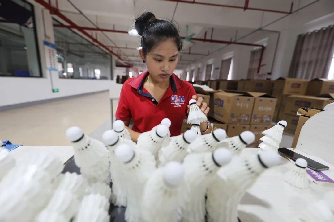 ▲2024年8月24日,贵州黔东南州一家体育文化产业公司的羽毛球生产基地,工人在品质全检车间工作 图/视觉中国